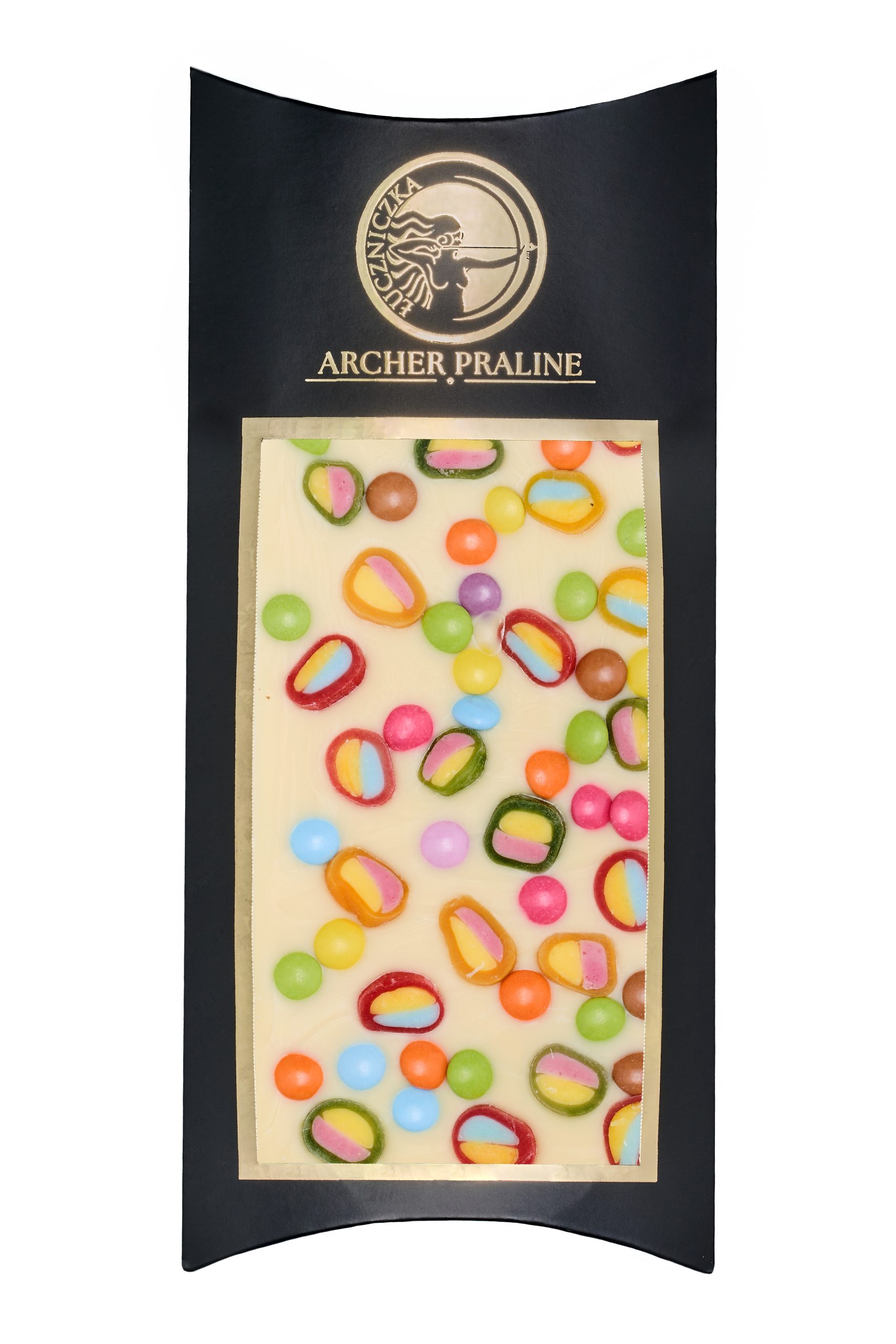 Czekolada biała z drażami, oraz żelkami owocowymi 100g