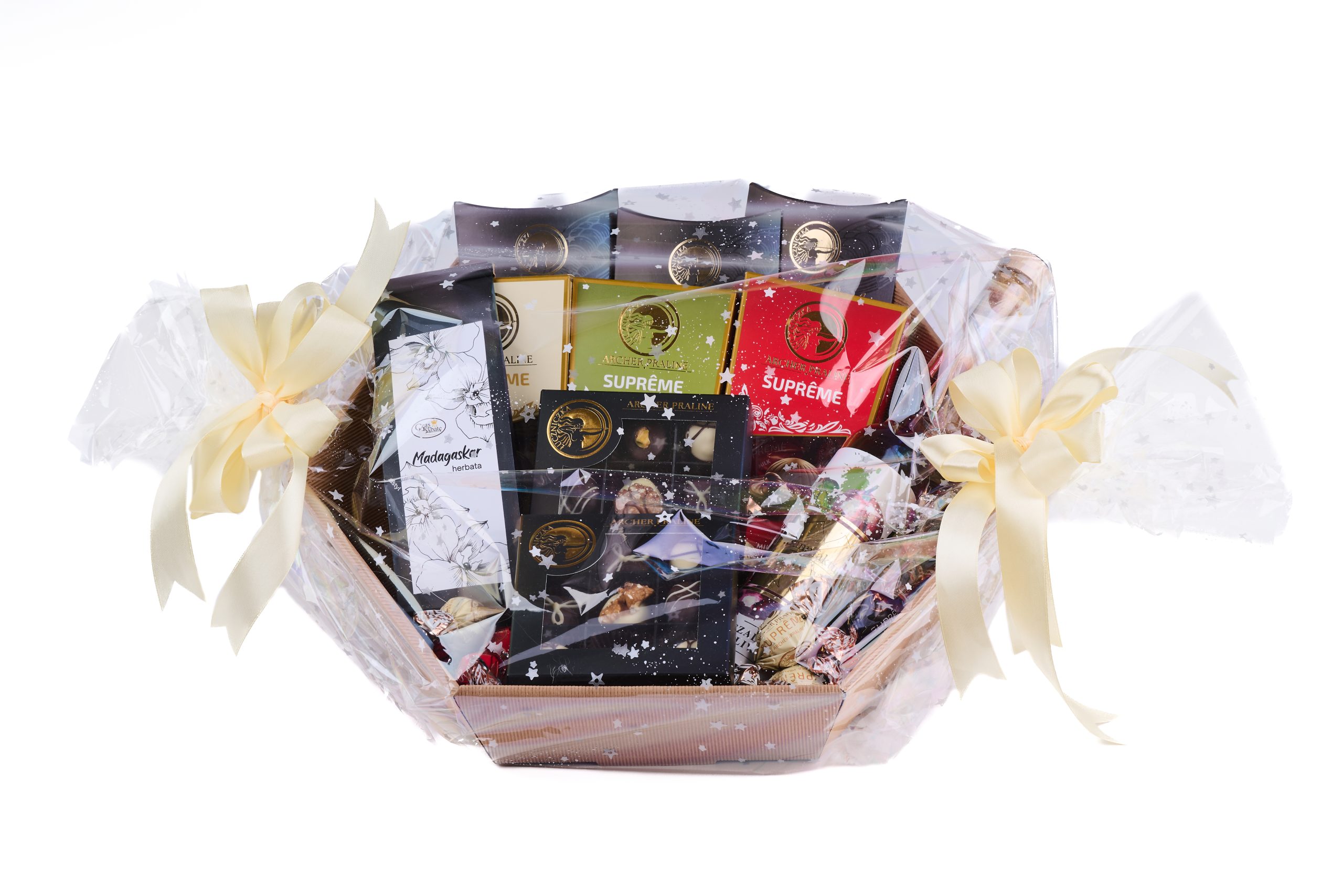 Świetnie się prezentuje, zawiera nasze przepyszne produkty, spakowany z wielką dbałością o detale.